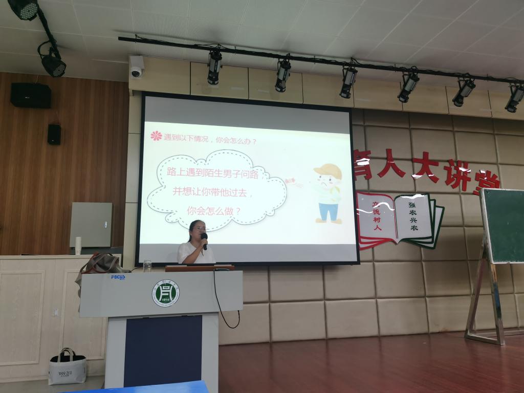 最后,秦双飞老师又以两个问题为例给大家讲解了女生应该如何保护自己和在校期间要注意的安全常识。(撰稿/秦双飞 摄影/张佳茵)