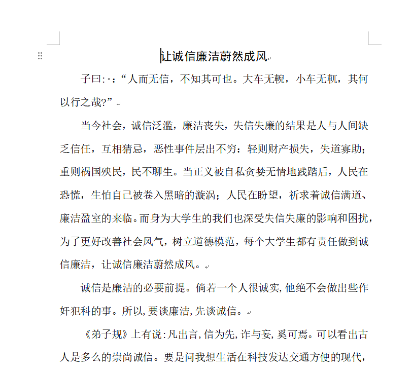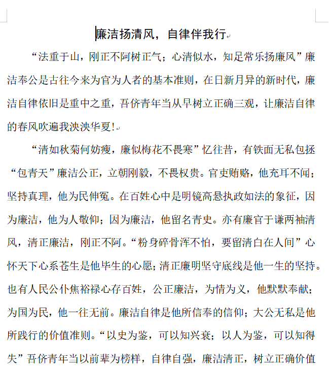 此次大赛同学们积极参与,踊跃投稿,共收到参赛作品70余份,同学们围绕“廉洁、自律、诚信、文明、团结”,有的详细举例了历史伟人的廉洁故事,畅谈了自己对清正廉洁的看法,表明要见贤思齐,坚决抵制享乐奢靡、铺张浪费的观点;有的结合自身实际,通过讲述身边的典型人物事迹,展现了清廉的党风、清净的校风、清正的教风、清新的学风,传播了崇廉尚洁的正能量;还有的以独特的视角切入,分享了校园廉洁文化建设的成果,借用文字展现出对廉洁校园氛围的期待与向往。