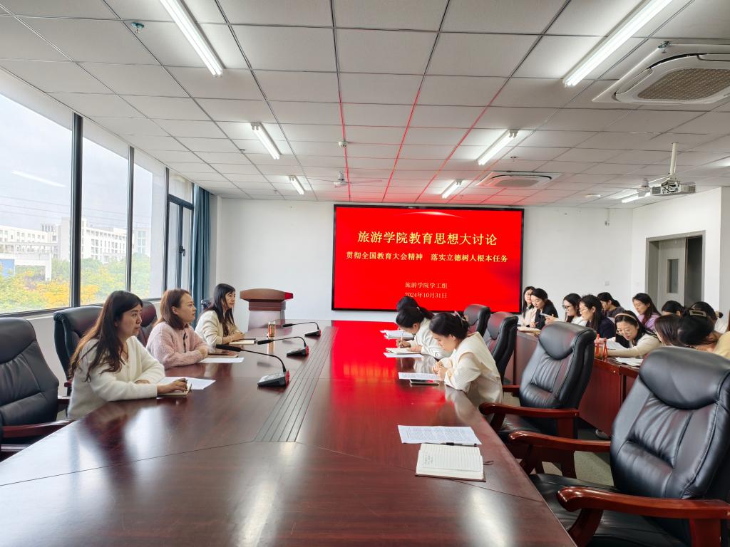 为深入学习贯彻党的二十届三中全会精神和全国、全省教育大会精神,落实立德树人根本任务,按照学校和学院教育思想大讨论工作安排,10月29日,旅游学院全体专兼职辅导员在310会议室围绕《贯彻全国教育大会精神 落实立德树人根本任务》这一主题,开展教育思想大讨论,各年级辅导员代表参与交流发言。