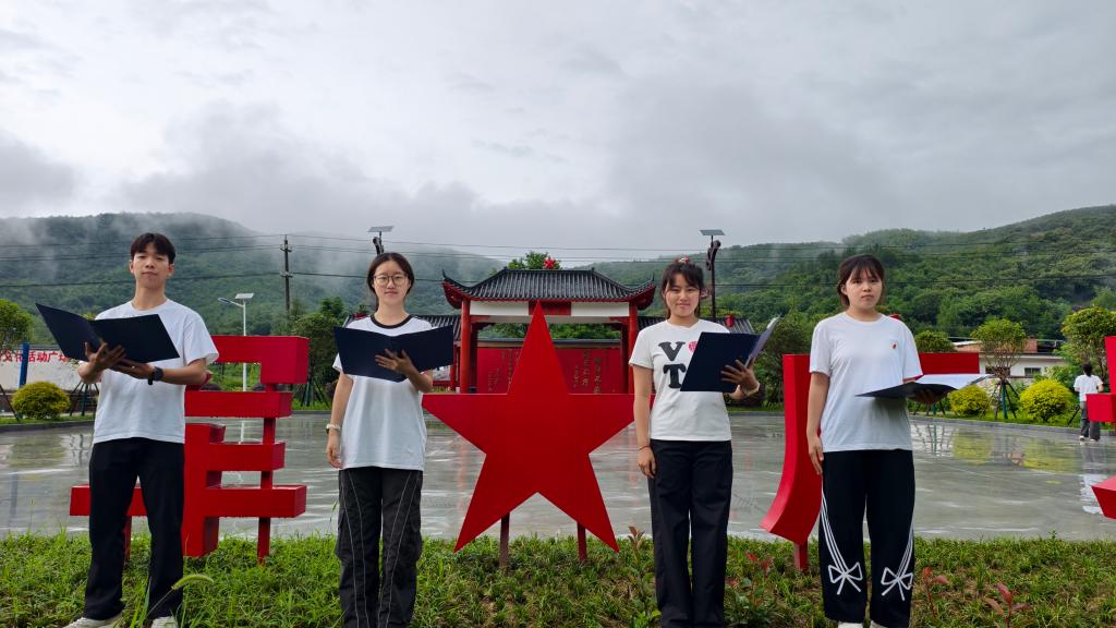实践团还专程前往吴上楼村余克勤将军故里,接受深刻的革命传统教育。师生们怀着崇敬之心瞻仰将军雕塑,驻足于记录其光辉事迹的宣传展板前,深切体悟革命先辈的崇高理想与坚定信念,革命精神深深感染了在场每一位师生。在这个红色教育基地,学生们还学以致用,化身红色故事讲述者,面向师生和当地群众,清晰流畅的讲解余克勤将军的英勇事迹。活动在题为《大写的中国》的集体朗诵中推向高潮,激昂的诵读声在将军故里回荡,传递着青年一代对祖国深沉的热爱与建设强国的青春誓言。