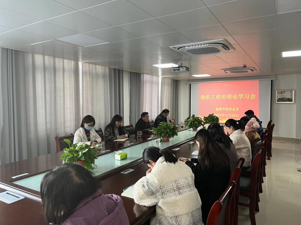 为了认真学习贯彻落实党的十九届六中全会精神,11月23日下午,融媒学院党总支开展党的十九届六中全会精神专题学习活动,全体教职工参加。