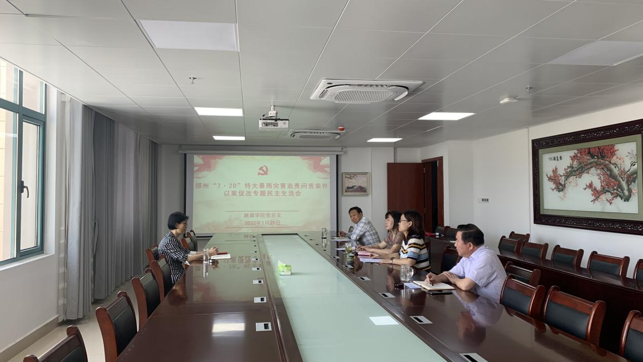 按照学校组织部部署,5月29日,融媒学院领导班子在学术交流中心415召开“7·20”特大暴雨灾害追责问责案件以案促改专题民主生活会。学院党总支书记关照霞主持会议,班子成员参加。校党委委员、副校长王万玲到会指导并讲话。