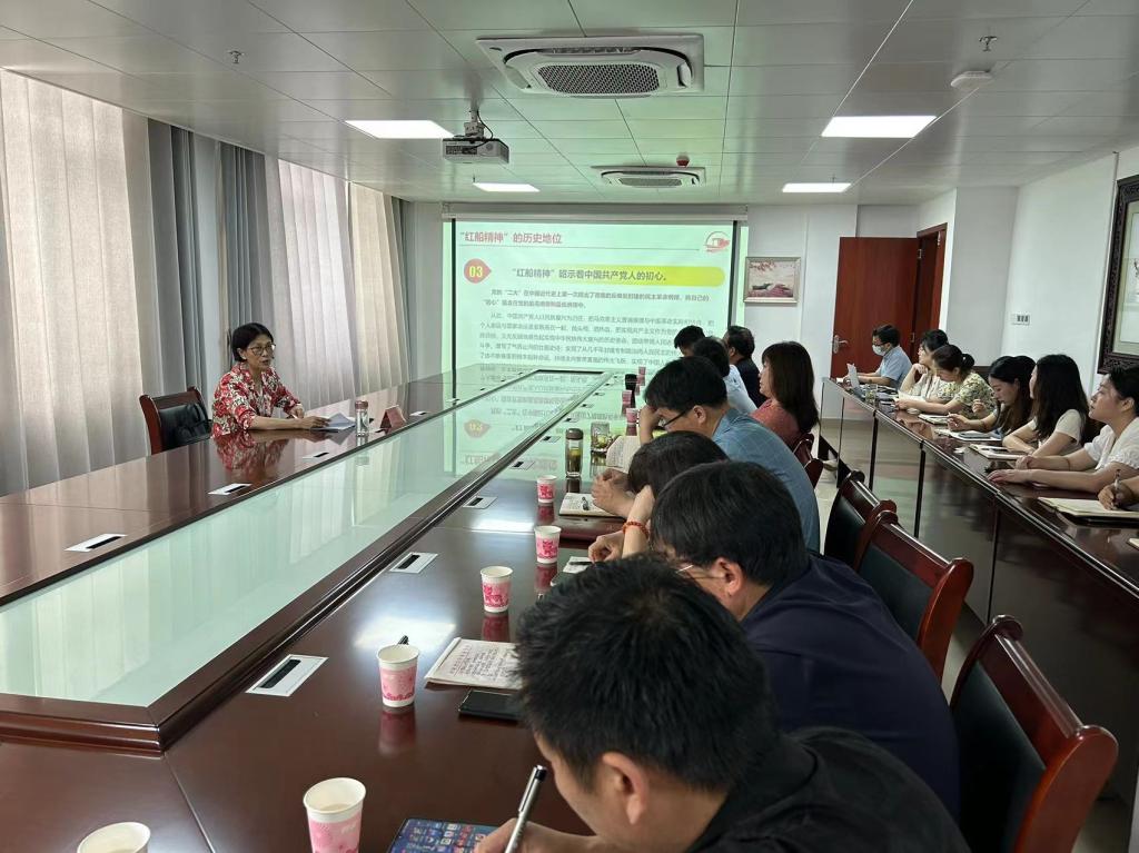 为深入学习贯彻习近平新时代中国特色社会主义思想,筑牢思想根基,强化理论武装,推动学习贯彻习近平新时代中国特色社会主义思想主题教育走深走实,6月21日上午,校党委委员、副校长王万玲以“弘扬红船精神 赓续红色基因”为题,在融媒学院马克思主义新闻思想研习室为校学生处、校招生就业处、校心理健康中心和融媒学院的全体党员干部上党课。