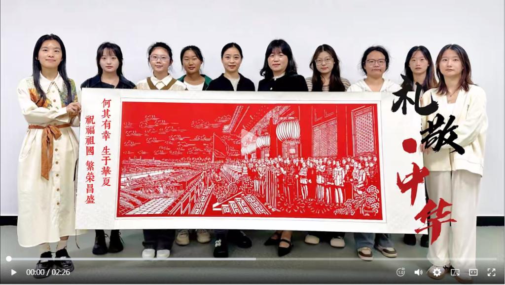 作为中国传统文化的瑰宝之一,剪纸起源于古代民间艺术,历史悠久。2006年,剪纸艺术被列为第一批国家非物质文化遗产,郭沫若先生曾用“一剪之趣奇神功,美在民间永不朽。”来赞美这一民间艺术。非遗剪纸是我院美育教育系列活动之一,从今年5月开始,我支部教师党员赵展组织学生党员精心准备大型剪纸作品《开国大典》,为祖国生日献礼。