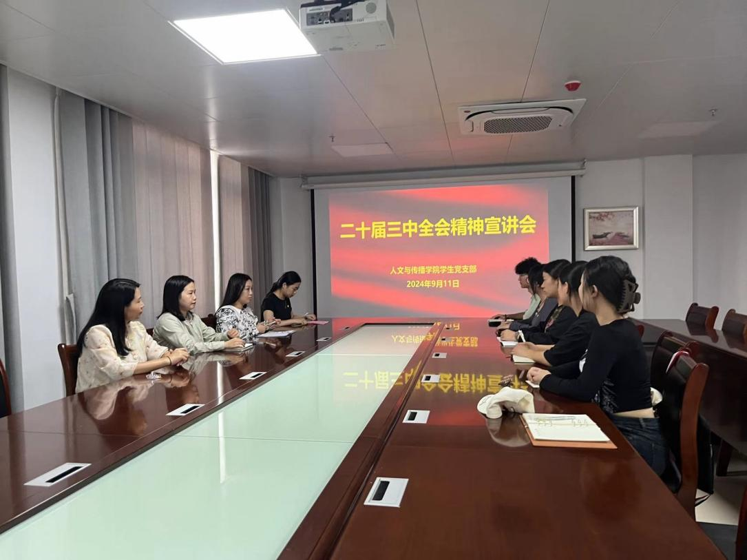2024年9月11日,学生党支部组织全体党员学习领会党的二十届三中全会精神,全体党员一致表示,要在全会精神的指引下,坚决把思想和行动统一到以习近平同志为核心的党中央决策部署上来,以党的旗帜为旗帜、以党的方向为方向、以党的意志为意志,为奋力谱写中国式现代化新篇章、全面推进中华民族伟大复兴贡献自己的力量。