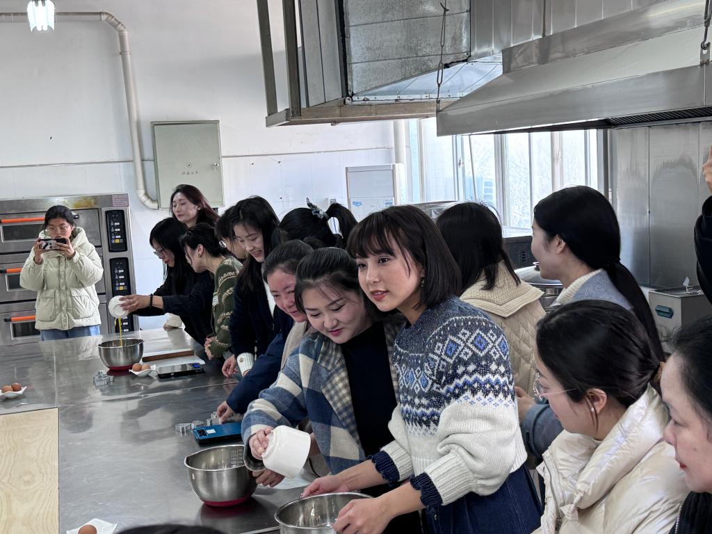 3月8日下午,我院分工会文体委员王媛老师、辅导员刘青老师代表我院女教职工参加“巾帼同行·共享春甜——‘三八’妇女节糕点DIY” 活动,她们全心投入,用巧手做出美味酥饼,用照片记录美好回忆,在向大家在分享成果时表示,通过本次活动感受到学校对女教职工的深切关爱。