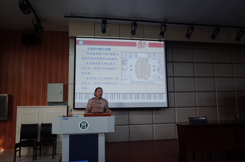 在演讲中,杨健以饱满的热情与大家分享了多部中外名曲片段,他声情并茂的解说与吟唱,让师生们陶醉在一阵阵悦耳优美的旋律中。《黄河大合唱》、《红旗颂》等经典名曲的赏析,更是增强了在座师生对音乐的感知力,也激发了师生们浓烈的爱国之情。杨健通过丰富的知识储备和风趣幽默的演讲方式,将音乐从多个方面进行解读,使音乐的概念在师生们的头脑中更加清晰,讲座在热烈的掌声中圆满结束。