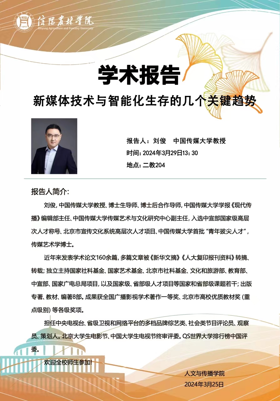 人文与传播学院学术报告——新媒体技术与智能化生存的几个关键趋势