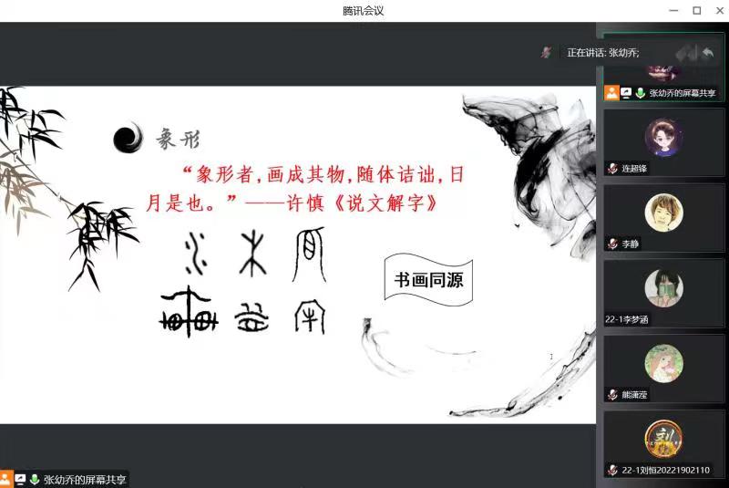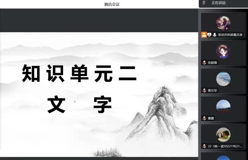 张幼乔老师通过腾讯会议为网络与新媒体专业2201班30位同学讲解了知识单元二,重点讲了“六书”中的象形、指事、会意字。学院督导组成员与文秘教研室教师从教学态度、教学内容、教学方法、课堂效果等方面对张幼乔老师的这节课进行了中肯的评价,及时填写了听课记录表,并通过教研室主任将评价意见反馈给张幼乔老师。