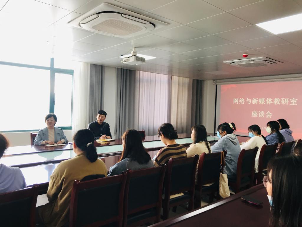 为了解学生思想动态,倾听学生对于教学管理方面的意见和建议,按照学校期中教学检查相关要求,11月1日,网络与新媒体教研室在学术交流中心415办公室组织召开2022-2023学年第一学期学生座谈会,来自网络与新媒体专业的20名学生参与了座谈会。座谈会由教研室主任王淑君老师主持,青年教师彭博、周姣姣参与了会议。