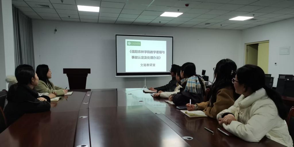 为严肃考风考纪,规范考试管理,12月16日下午,文秘教研室在416会议室组织开展专题学习培训,深入学习《beat365在线平台官网教学差错与事故认定及处理办法》《beat365在线平台官网课程考核管理办法》等文件精神。活动由教研室主任连超锋主持。