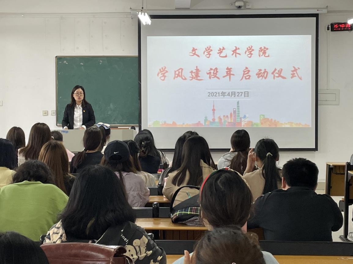 为进一步提升学风建设质量,全面推动“三全育人”落地落实落细,营造良好的育人环境和优良的学习氛围,4月27日,文学艺术学院在二教107教室举行文学艺术学院“学风建设年”启动仪式。文学艺术学院党总支副书记杨艳华、李依然、郜若霖老师以及全体学生参加。