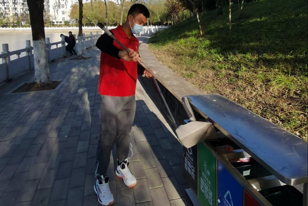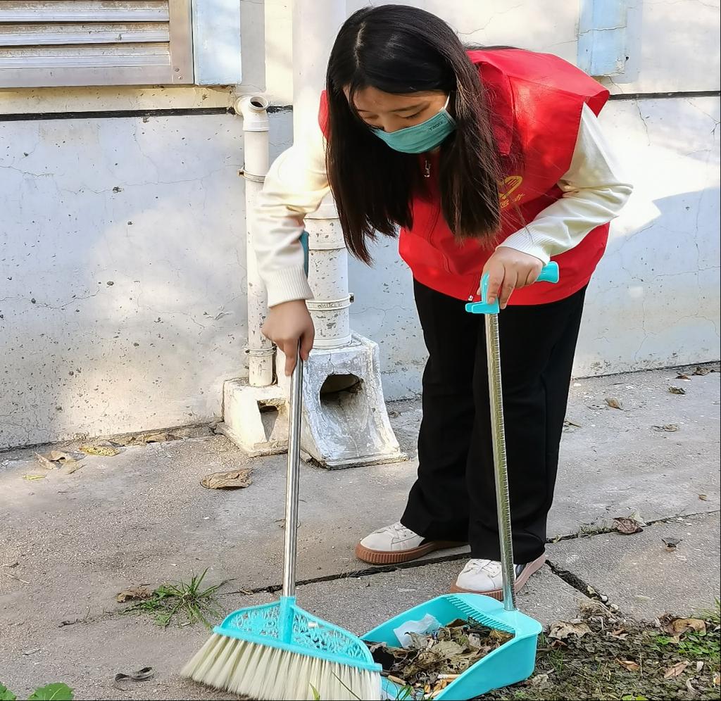活动开始后,我院同学共分为两个小组。第一小组的同学齐心协力将乱停乱放的自行车、电动车摆放到停车区,把停车区东倒西歪的车辆摆放整齐,积极引导同学们规范停车,并向同学们宣传文明共享,绿色出行的理念,倡导同学们做文明的骑行者、文明的停放者、文明的宣传者,共同助力创建文明校园。第二小组的同学对荷塘周围草坪及道路卫生进行了彻底打扫,大家仔细地查看着路面、树丛、公共设施区域,将发现的垃圾捡起,轻轻放进垃圾桶里或扔进随身带的垃圾袋中。活动中,志愿者们发现在很多角落有隐藏的垃圾,因为位置比较隐秘,加之不易打扫,导致垃圾长时间堆积,志愿者便以清除校园死角为主要目标。经过他们的清扫,学校的角落也渐渐变得干净。