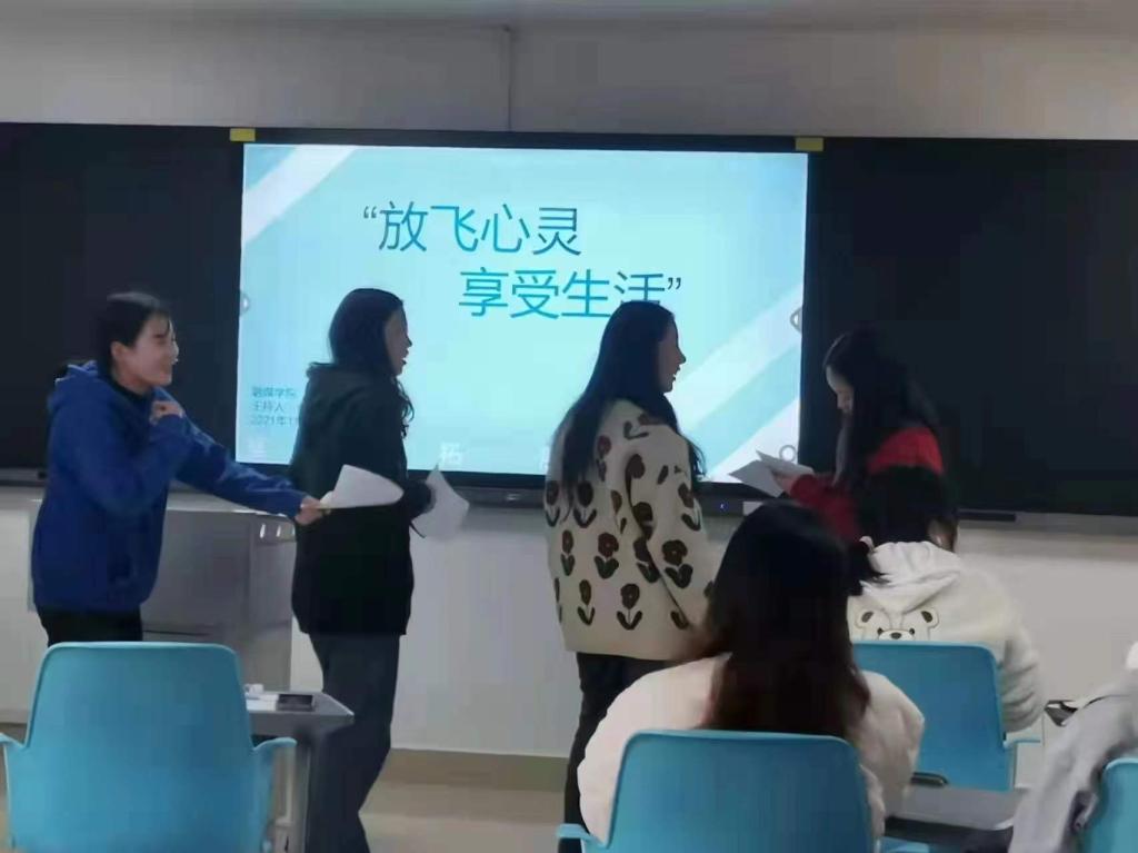 为进一步提高融媒学院学生心理素质,宣传普及心理健康知识,2021年11月12日融媒学院在学术交流中心开展“放飞心灵,享受生活”的室内心理素质拓展活动,20级全体学生参加。