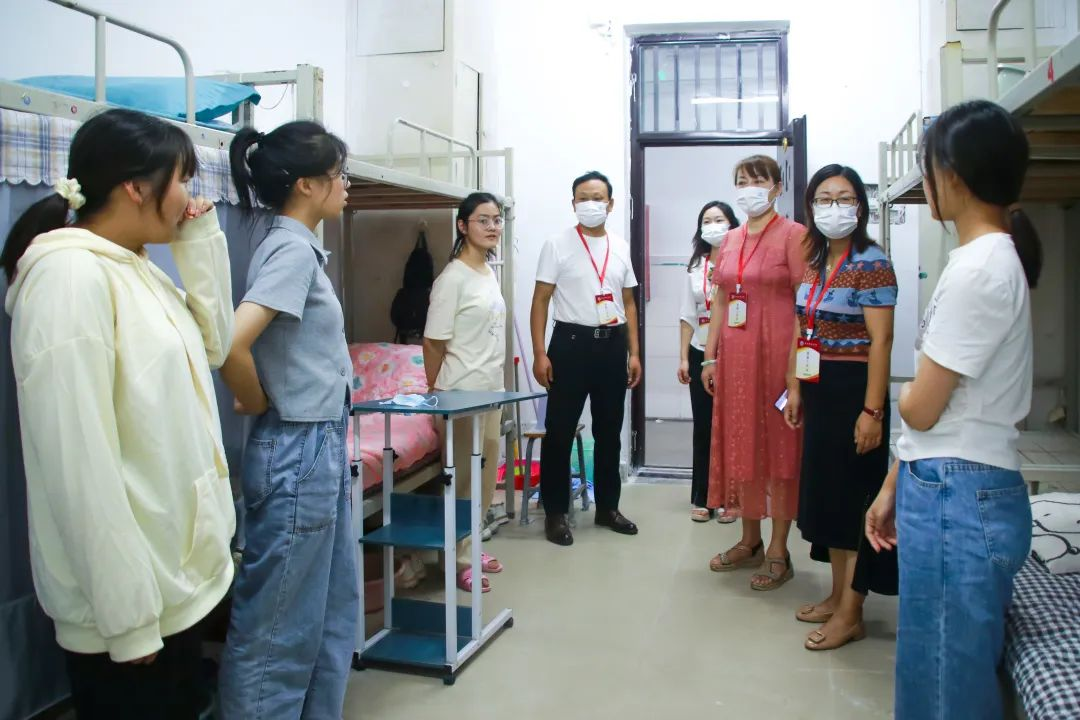 在新生入住后,院党总支书记关照霞、副书记杨艳华、副院长何鑫一行人深入宿舍与每位学生亲切交谈,解答到校后遇到的问题,关心学生的健康和安全。在与新生的交流中,询问他们来自哪里,是否适应学校生活,嘱咐大家团结友爱,努力学习,珍惜大好时光,争取取得优异成绩。
