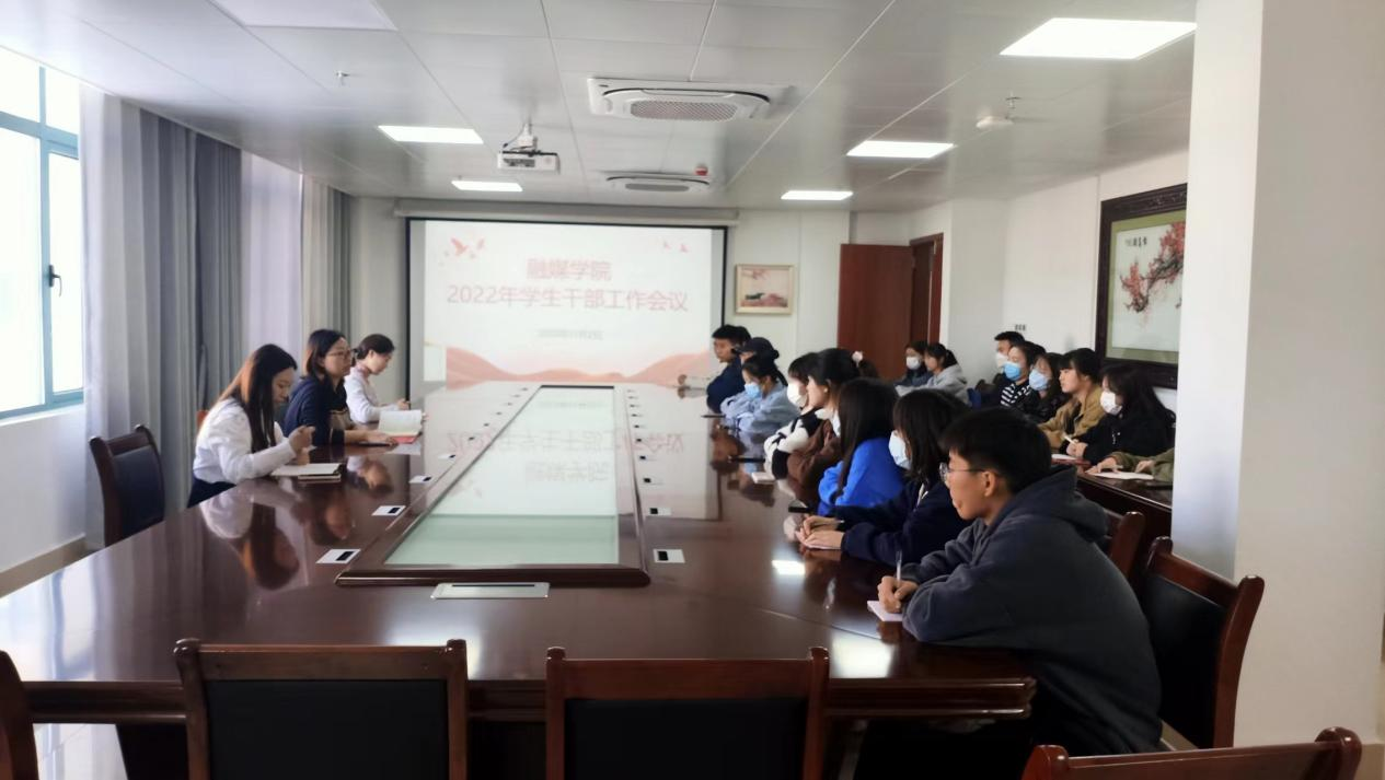 2022年11月2日,融媒学院在学术交流中心415会议室举行学生干部座谈会暨大学生自律委员会、学生会聘书颁发仪式。融媒学院党总支副书记杨艳华、团总支书记王蕾、辅导员郜若霖出席此次仪式,全体学生干部参加此次仪式。