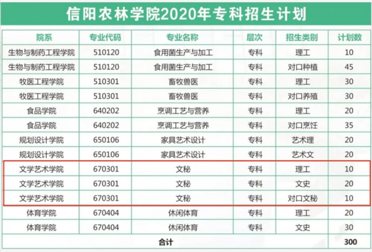 我院2020年普通专科分省分专业招生计划