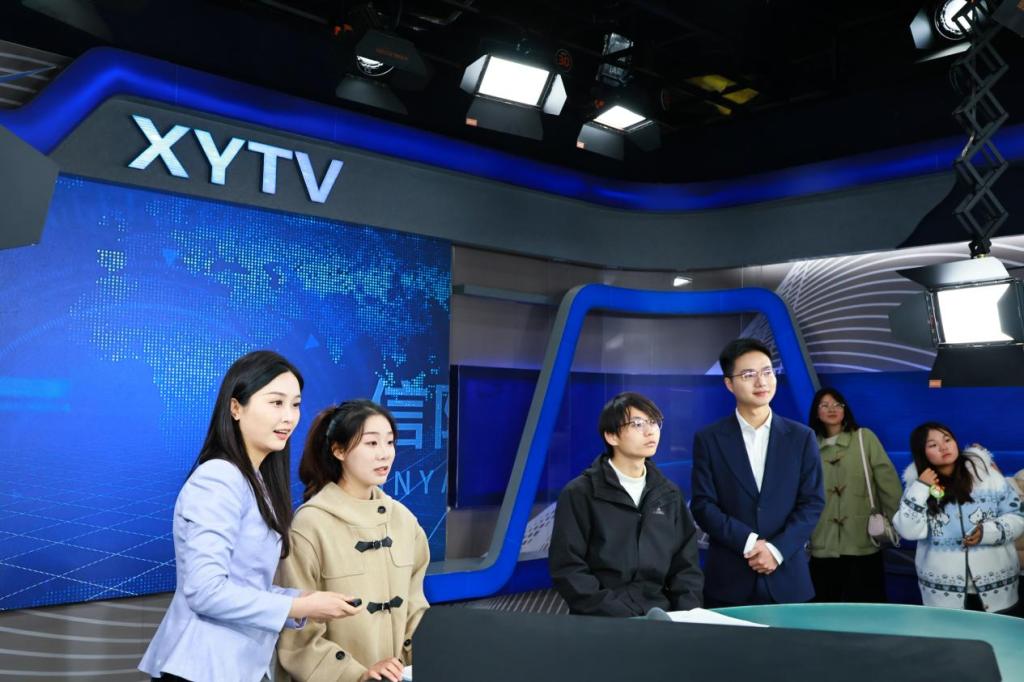 11月26日,实训队伍走进信阳广播电视台与电商小镇。在信阳广播电视台,beat365在线平台官网副校长雷振山与信阳广播电视台党组副书记、总编辑夏长江共同为“beat365在线平台官网教学实习实训基地”揭牌,进一步夯实校台双方在产教融合、实习实践领域的合作基础;同时,信阳广播电视台深度报道部主任徐立旻以《从业三十年视频直播案例分享》为题开展专题讲座,为学生带来行业一线经验,现场学习氛围浓厚。随后,学生前往电商小镇,重点调研新媒体在农产品品牌塑造、产品销售及地方经济振兴中的实际应用,直观感受媒体融合对产业发展的赋能作用,有效开拓专业视野。
