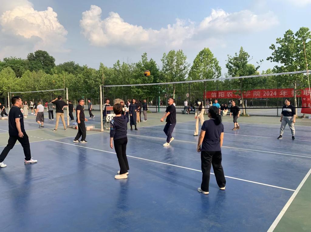 为加强学院文化建设,丰富教职工业余文化生活,增强学院教职工的凝聚力,人文与传播学院积极组织教师参加学校举办的2024年教职工排球比赛。