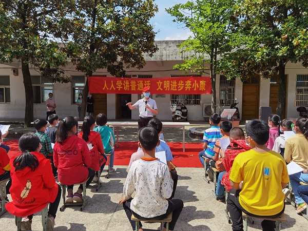 为深入学习贯彻习近平总书记关于统筹推进疫情防控和经济社会发展的重要讲话重要指示精神,助力打赢脱贫攻坚战,5月13日,在副校长赵一鹏的带领下,文学艺术学院前往固始县段集镇乐道村中心小学开展推普助力脱贫攻坚活动。院党总支书记关照霞、院长黄炎军、副院长何鑫及部分教师参加了此次活动。