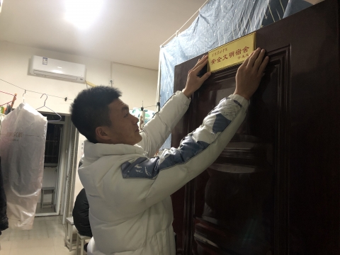 我院高度重视安全文明宿舍建设,各宿舍积极申报,认真准备,11#1114宿舍被评为“安全文明宿舍”。辅导员李依然、郜若霖对获奖寝室表示祝贺,对获奖宿舍学生代表进行颁奖授牌并合影留念,鼓励同学们要保持寝室环境整洁,养成讲文明、讲卫生、守纪律的良好习惯,营造良好的宿舍氛围。