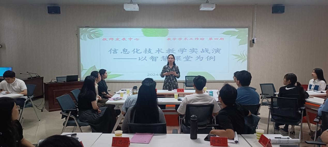 5月21日下午,教师发展中心成功举办2024年第四期工作坊,其主题为“信息化技术教学实战演练——以智慧树课堂为例”。来自17个学院的49位青年教师报名参加。此次活动在教师发展中心多功能厅举行,由教师发展中心副主任邵颖主讲。