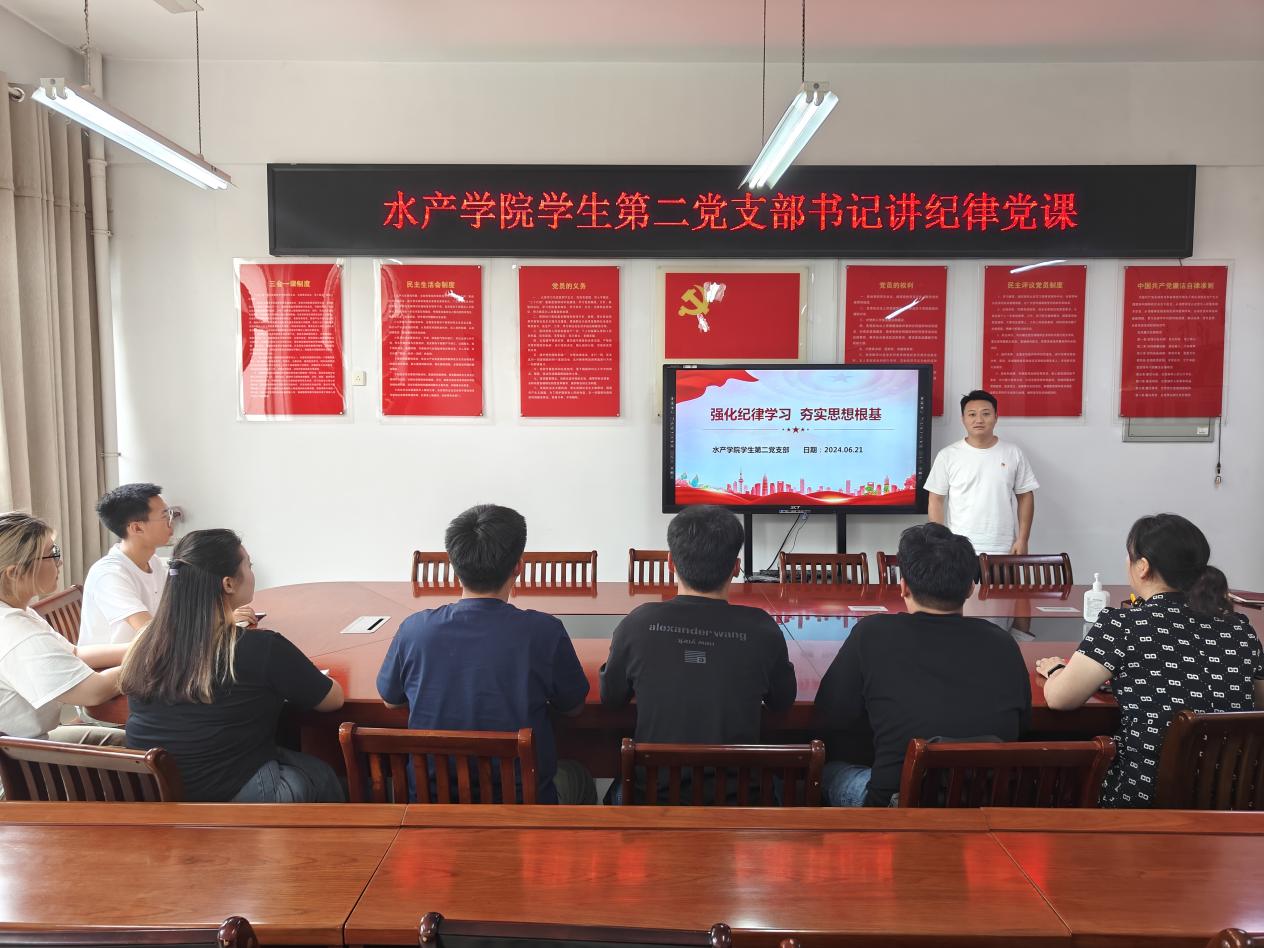 为持续推进党纪学习教育走深走实,加强党纪学习教育入脑入心,进一步提升党员的纪律意识和党性修养,6月21日中午,水产学院学生第一、第二党支部开展支部书记讲纪律党课活动,全体学生党员通过线上和线下参加了此次活动。