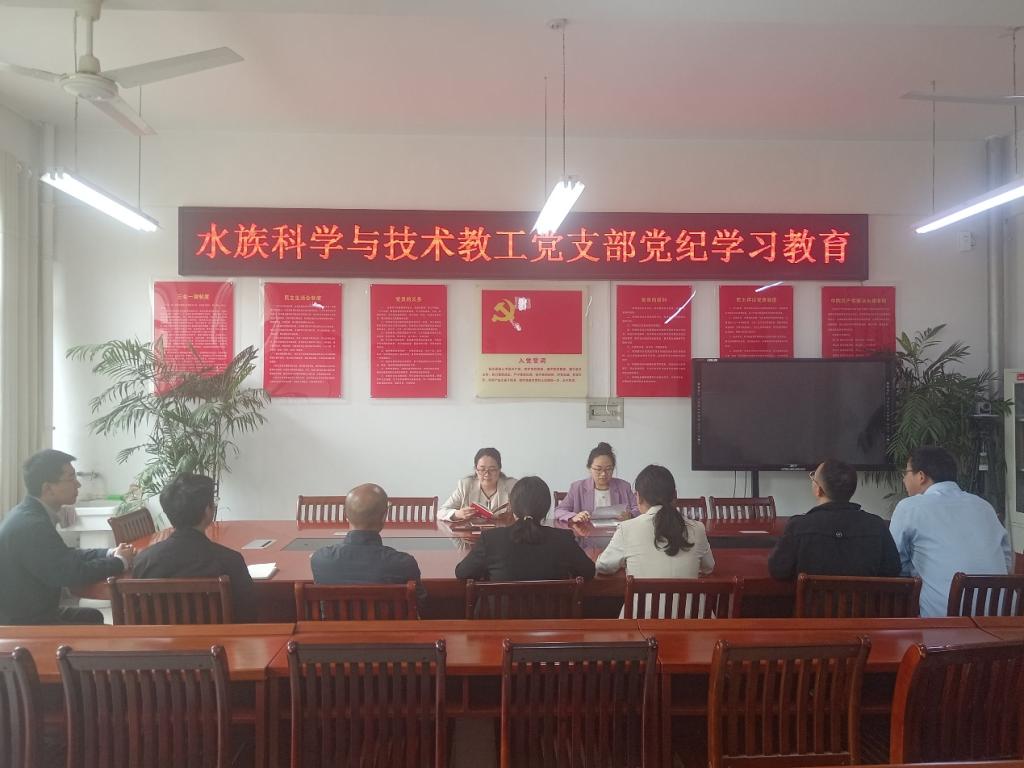 为深入学习贯彻修订后的《中国共产党纪律处分条例》,根据《中共beat365在线平台官网委员会印发<关于在全校党员中开展党纪学习教育的工作方案>的通知》(信农党发〔2024〕28号)及《水产学院党总支<关于在全院党员中开展党纪学习教育的工作方案>》要求,水族科学与技术教工党支部于4月29日下午在学院党员活动室2C330召开党纪学习教育集中学习会。会议由支部书记孟瑾主持。