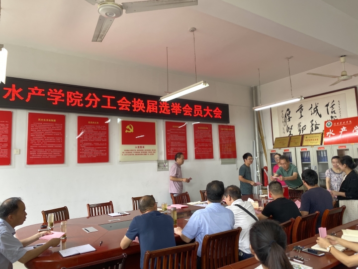 会议由水产学院党总支书记、水产学院分工会上一届分会主席郭旭升同志主持。会议按照学校分工会换届选举程序,采用无记名投票差额选举的办法,选举产生了新一届分工会委员会委员。