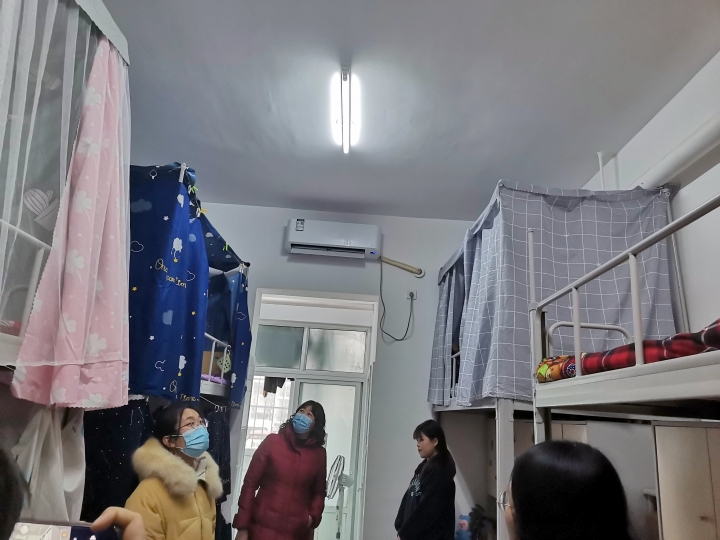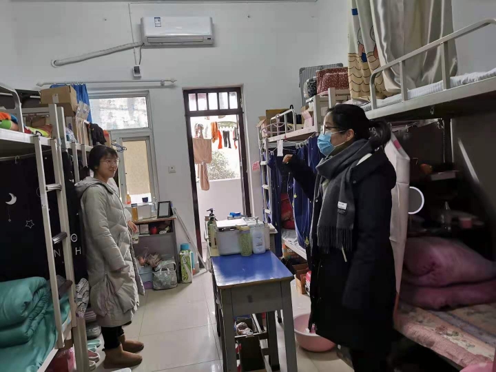 在院生活部、女生部、安全部协助下,学工组老师及各年级辅导员分四组对全院学生宿舍进行检查,其中主要检查学生使用大功率、宿舍卫生以及安全问题,各辅导员老师仔细认真对学生宿舍进行排查,同学们积极配合学院的检查工作,卫生整洁,一些学生正在积极备战四六级考试,宿舍文化氛围浓厚,绝大部分的宿舍都做到了地面、桌面干净整洁,用电合理安全。党总支副书记黄光玲老师对学生提出了以下几点要求:一、冬季是流行性感冒高发季节,要保持宿舍通风,勤洗手,多锻炼,增强自身抵抗力。二、疫情常态化下,非必要不外出,要时刻警钟长鸣、时刻警醒。三、注意防火,不使用大功率电器,时刻提高警惕。