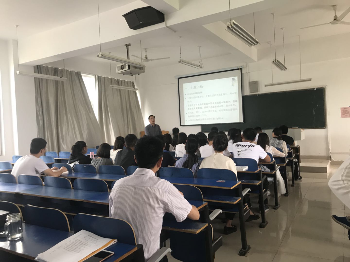 2018年5月2日上午,由水产学院汪成竹老师主讲的校优质课程——2017级水产养殖学(对口本科)《水生生物学》在一教D303教室顺利开讲。校教学质量监控与评估中心、部分校级督导员、水产学院教师现场观摩。学校实验教学管理处大力支持本次观摩活动,并对本次观摩过程全程录像存档。课前,水产学院周本翔副院长对汪成竹老师的基本情况做了简要介绍。
