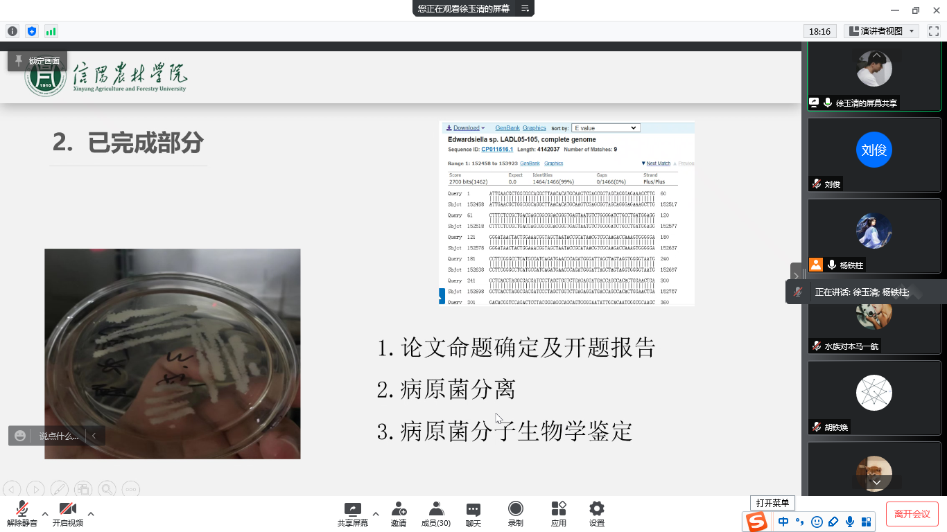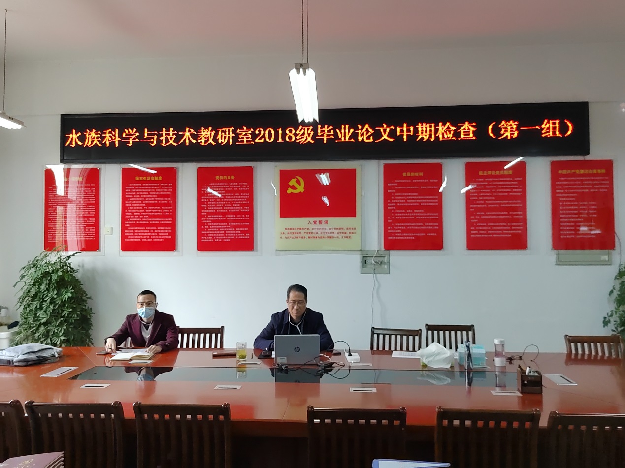 为全面了解2022届本科毕业论文(设计)具体进展情况,水产学院水产养殖学教研室和水族科学与技术教研室分别于3月31日和4月1日召开线上中期检查答辩会,毕业论文指导老师及2022届毕业生参加了此次会议。