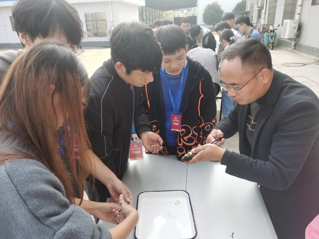 本次实训周内容囊括了生产环节的“饲料配方设计”“饲料原料辨别”、“饲料加工工艺流程”、“饲料品质管理”、“饲料检化验分析”;技术服务环节的“水产养殖技术培训”、“水产饲料行业现状”、“撒网与鱼类解剖”;专家解答环节等环节。最后学生们还参观了特种水产苗种培育基地。