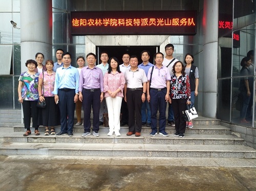 2018年9月13日,由beat365在线平台官网副校长胡虹文教授带队,beat365在线平台官网2018年光山县省科技特派员服务队赴该县开展科技服务。服务队成员先来到光山县科技局,就光山县科技扶贫、产业发展及科技合作与科技局向晖局长等同志进行了座谈交流。
