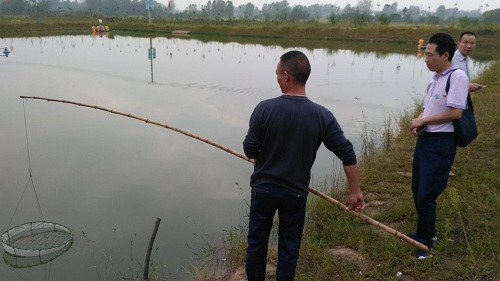 会后,服务队成员郭旭升教授、王德芝教授和赵良杰博士在光山县水产局相关负责同志的陪同下,赴光山县科技示范村北向店乡曹畈村和斛山乡佳宝养殖基地开展科技服务。几位教师先是来到曹畈村,实地查看该村龟鳖、草鱼养殖以及稻虾共养的发展情况和目前存在的问题:对龟鳖类病害防控、秋季管理等提出自己的建议;实地查看该村草鱼病害的发生,指导养殖户进行疾病治疗;在贫困户的稻虾养殖区,现场讲解水稻收割后小龙虾的管理和后期苗种的培育技术。在斛山乡佳宝养殖基地,郭旭升教授和赵良杰博士询问了之前在该基地推广的健康养殖技术的实践效果,对该基地南美白对虾的养殖情况和下一年度的风险控制提出了自己的建议;王德芝教授对该养殖基地自制水产用微生物制剂的生产进行了指导,并对养殖场培养的微生物制剂进行取样。