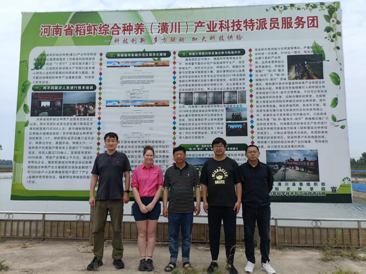 4月27日,澳大利亚新英格兰大学环境与农村科学学院Debbie Bower副教授一行来水产学院交流,在水产学院赵良杰副教授、胡志国老师的陪同下,先后考察了信阳黄缘闭壳龟救护中心、潢川金园农业科技有限责任公司、河南华来时代农牧科技有限公司及河南省九星丰源水产养殖有限责任公司,围绕龟鳖生态保护、繁育技术、产业发展及资源可持续利用等议题展开深入调研与学术交流。