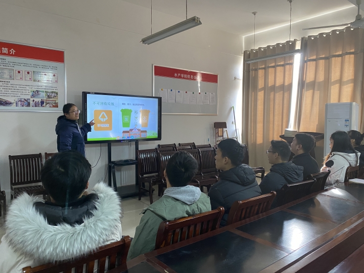 建设优美、整洁、靓丽的校园环境,是所有在校大学生义不容辞的责任;建设干净、整洁美丽的信农,更是信农学子的心声。为积极响应生活垃圾分类工作的号召,大力倡导低碳生活,保护我们生存的环境,水产学院各年级辅导员老师于12月9-10日举办了“垃圾分类,从我做起”系列主题班会,带领同学们感受垃圾分类为校园生活以及城市生活所带来的好处与便利。