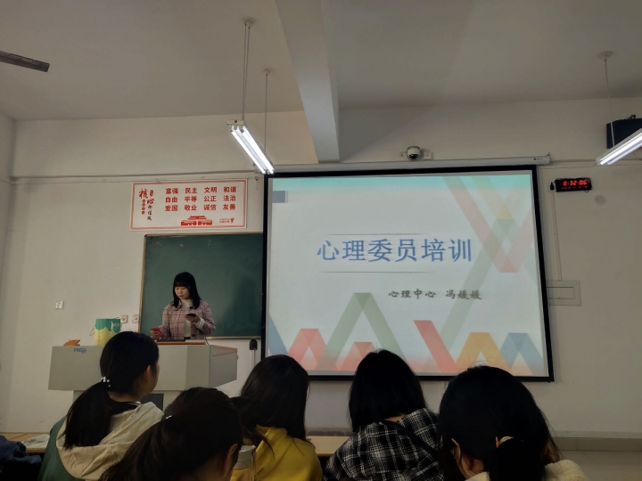 冯老师形象地讲解了有关心理健康方面的知识、心理咨询的工作范围,并进行自我成长分析。明确了各班心理委员、各宿舍长的工作职责。鼓励各班心理委员应当不断的自我成长、疏导关怀并帮助各班心理有困难的同学。各宿舍长也应当时刻关注宿舍各成员的心理动态,与老师保持常态联系。此次培训受到了同学们的一致好评,很多同学表示感触很深,今后将更加重视心理健康问题,切实履行好心理信息员的职责。(段丁毓)