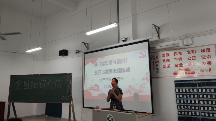 为进一步加强大学生对党团知识的了解,增强大学生的思想政治教育,水产学院于9月29日上午八时在二教404,以水产学院组织员黄光玲为主讲人开展“党团知识介绍”主题讲座19级全体新生参加。
