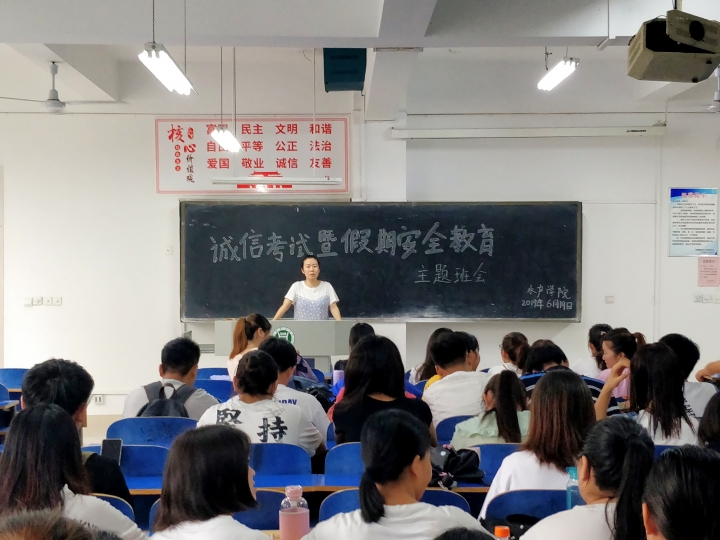 期末考试临近,诚信考试是每个大学生都应当遵循的内在要求,然而随着不诚信现象的偶尔发生,考试诚信宣传仍然需要不断的加强。6月19日,水产学院在1教A205、C202、105分别开展了诚信考试暨暑假安全教育会,团总支书记晏方舟,辅导员冯德祥、李建玲,在校参加考试的全部学生参加会议。