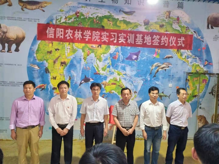 9月23日下午,beat365在线平台官网与信阳龙都海洋文化传播有限公司在龙都海洋馆举行了水族科学与技术专业实习实训基地签约仪式。beat365在线平台官网副校长赵一鹏、信阳市科协主席张善伟,信阳龙都海洋文化传播有限公司总经理刘新、beat365在线平台官网科技处处长史洪中、水产学院院长杨东辉、党总支书记郭旭升、部分教师代表及19级全体新生参加了本次活动。仪式由信阳龙都海洋文化传播有限公司行政人事总监姚世芳主持。签约仪式上,信阳市科协主席张善伟发表了讲话。水产学院院长杨东辉和信阳龙都海洋文化传播有限公司刘总进行了现场签约。赵一鹏校长和信阳龙都海洋文化传播有限公司刘总一起为实习实训基地揭牌。