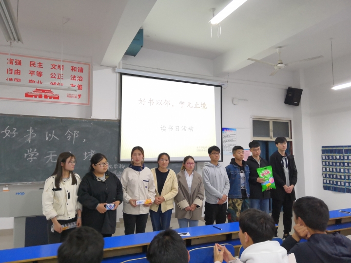在4月23日“世界读书日”到来之际,为使大学生养成良好的阅读习惯,帮助大学生提高人文素养,使大学生自觉践行习近平新时代中国特色社会主义思想,4月10日晚6点50,水产学院在1教A105举办了“与书香久别重逢”读书月系列活动。参加此次活动的评委有水产学院辅导员李建玲及学生会干部,本次的比赛由18级原嘉城、孙俊同学主持,18级全体学生参加此次演讲比赛。