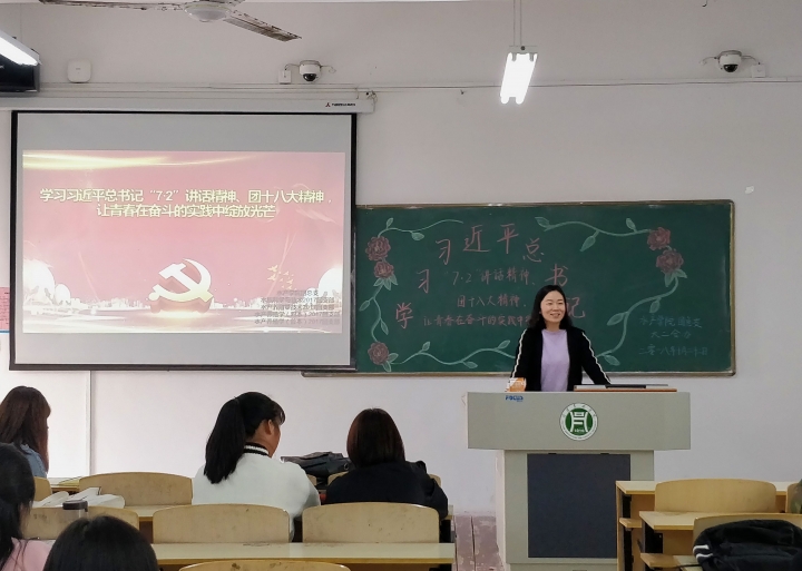 为深入学习“7.2”习近平总书记重要讲话精神、团十八大精神, 10月22日,水产学院在二教208教室开展主题为“学习7.2讲话精神,团十八大精神,让青春在奋斗的实践中绽放光芒”学习活动。团总支书记晏方舟老师及17级全体团员参与了此次活动。 晏老师首先带领大家学习了“7.2”讲话和团十八大的具体内容,指出作为一名共青团员,要热爱党、热爱祖国、热爱人民,自觉拥护祖国统一,民族团结,担当时代赋予的责任和使命。随后,大家进行了热烈的讨论,团员代表纷纷发言,表达了身为团员要在新时代的历史背景下刻苦学习,与祖国发展同频共振。团干部也表示要担当起团干部的职责,率先垂范,让青春出彩。最后,晏老师总结到:广大青年要牢记习近平总书记的教诲,有理想、有信念、有担当,争做德智体美全面发展的社会主义合格建设者和可靠接班人。(晏方舟)