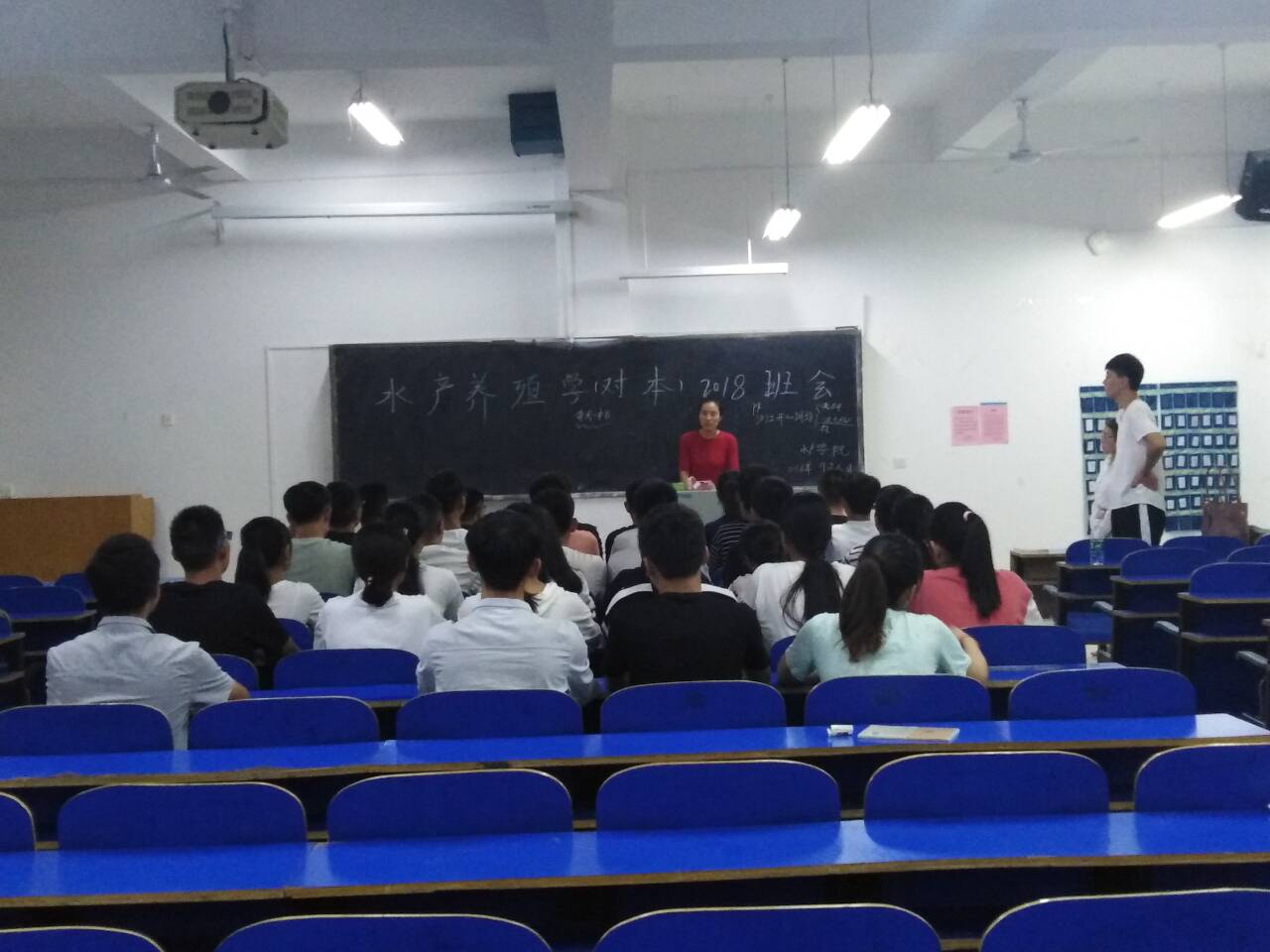 9月10日下午,水产学院新生辅导员冯德祥、李建玲分别召开2018级新生班会。班会上,辅导员对新同学的到来表示热烈欢迎,并做了自我介绍。接下来是同学们相互认识环节,很多同学都积极主动站上讲台展示自己的风采,大家在欢声笑语中增进了了解和友谊。第三个环节是军训动员,鼓励大家发扬艰苦奋斗、吃苦耐劳的军人精神,圆满完成军训任务,争优创先,为院争光。最后,辅导员给大家进行了安全教育,要求大家提高安全防范意识,在夜间出行、宿舍用电、财产存放、不良校园贷等问题上多加留意,切实保障人身财产安全。(晏方舟)