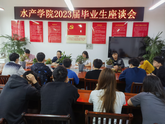 5月30日上午,水产学院在会议室召开2023届毕业生座谈会。水产学院党总支书记、院长郭旭升,副书记黄光玲,团总支书记刘开放及2023届毕业生代表参加会议。会议由黄光玲主持。