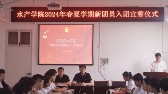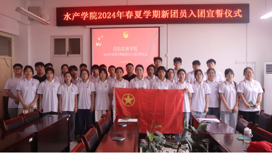 为进一步落实团中央下发的《中国共产主义青年团发展团员工作细则》,规范发展团员工作,加强团员意识教育,2024年6月19日,水产学院团总支于学院328会议室隆重举行了2024年春夏学期新团员入团宣誓仪式。水产学院党总支副书记冯德祥、水产学院团总支书记刘开放及新发展团员共计30余人参加了本次活动。