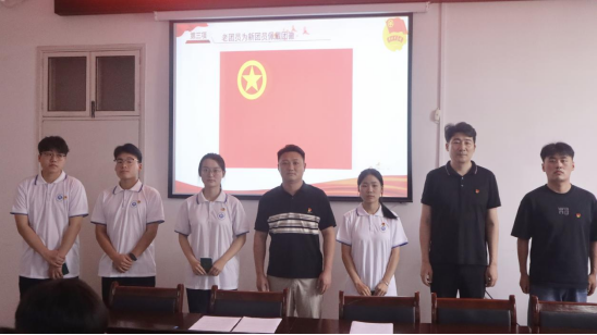 庄严的国歌奏响,入团仪式正式开始。刘开放首先宣读了2024年春夏学期新发展团员的名单,并向他们表示祝贺。冯德祥、刘开放、学生党员代表牛乐尧、老团员代表李鹏宇向新团员颁发了团员证和团徽。领誓人王雷鹏带领新团员们进行入团宣誓。入团介绍人刘开放宣读《团章》中有关团员的义务和权利的条款,为新团员们明确了作为团员的责任和前进的方向。随后,新团员代表刘子恺、老团员代表包东冰先后进行发言。