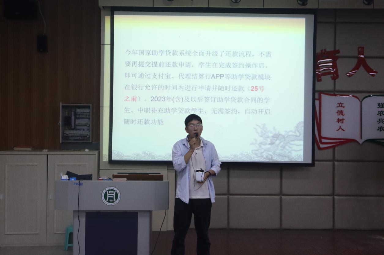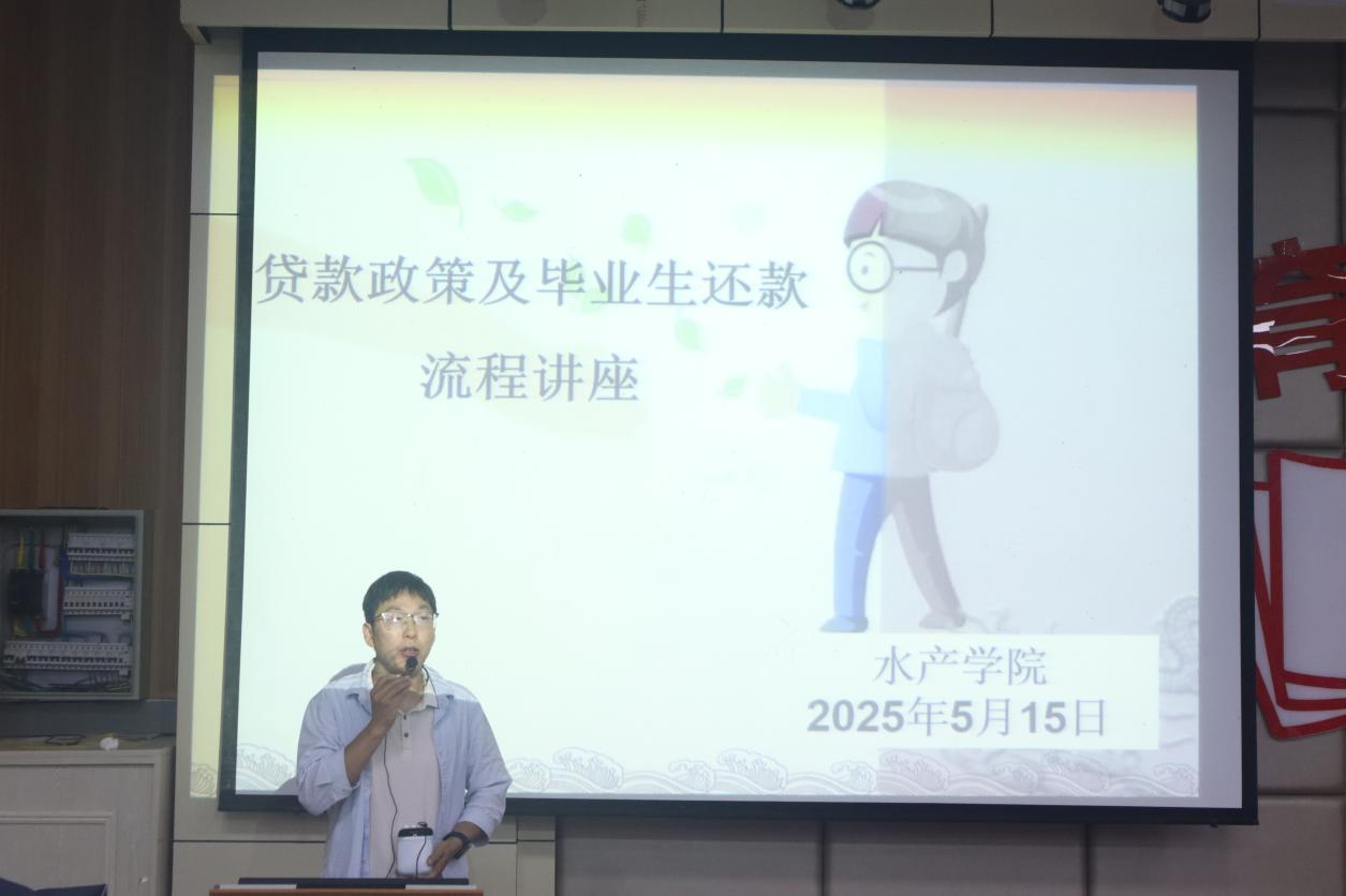 为切实做好国家助学贷款毕业生离校服务,强化学生诚信还款意识,确保贷款还款工作有序推进,5月15日下午,水产学院在一教E101召开2025届国家助学贷款学生毕业确认暨诚信教育讲座。讲座由学院资助专员姜汉军主持,2025届全体贷款毕业生参会。
