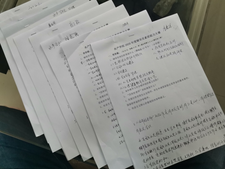 初赛以笔试的方式进行考察,考察内容涵盖思想政治教育;四有好老师;疫情防控常态化辅导员的作用;本科合格评估;辅导员的业务素质和专业知识如心理健康教育、突发事件处理、贫困生资助等。通过本次竞赛,坚定了辅导员作为思想政治教育工作者的理想信念,为政治引领学生、助力学生学习成长、解决学生实际问题,成为学生成长成才的人生导师和健康生活的知心朋友起到了积极作用。(水产学院刘开放)
