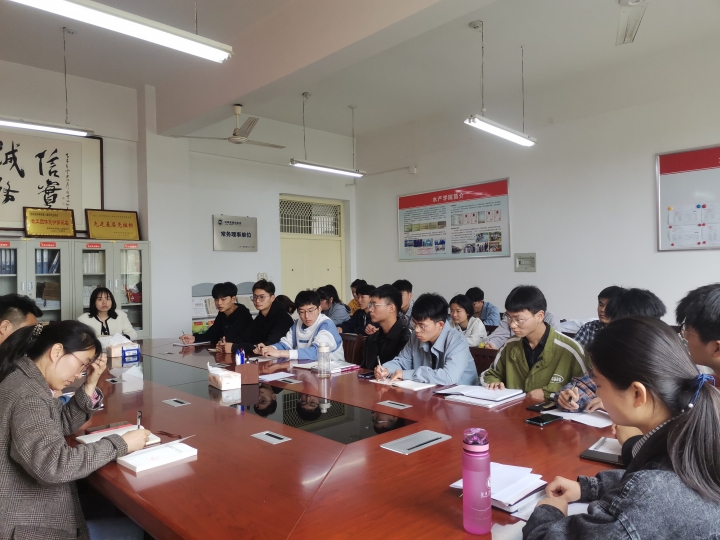 根据水产学院学风建设方案,4月28日中午1点,水产学院在会议室2C330召开学风建设研讨活动,党总支副书记黄光玲、专任组织员晏方舟、团总支书记刘开放、专职辅导员李建玲、兼职辅导员段丁毓、班级班长、学习委员参加此次会议。